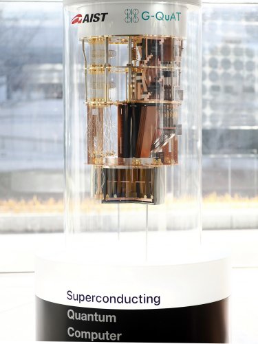 NECと産業技術総合研究所が開発中の大規模集積化(1000量子ビット超)の量子コンピュータ模型を展示します。